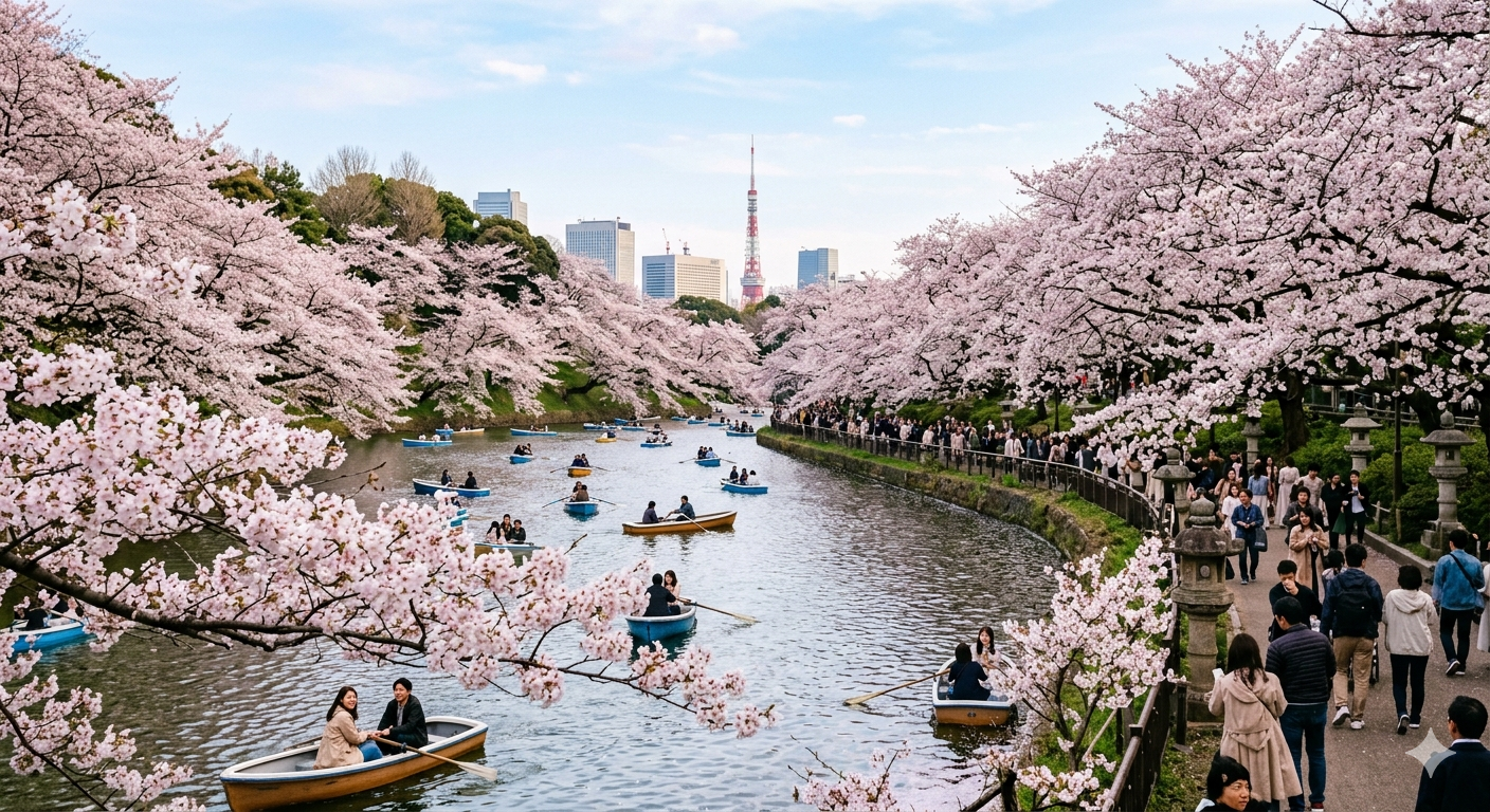 ช่วงปลายเดือนมีนาคม โตเกียวจะถูกแต่งแต้มด้วยสีชมพูของดอกซากุระตามสวนสาธารณะ ถนน และริมแม่น้ำ จุดชมซากุระยอดนิยม ได้แก่สวนอุเอโนะ แม่น้ำเมกุโระ และสวนชินจูกุเกียวเอ็น ที่เต็มไปด้วยต้นซากุระนับพันต้น